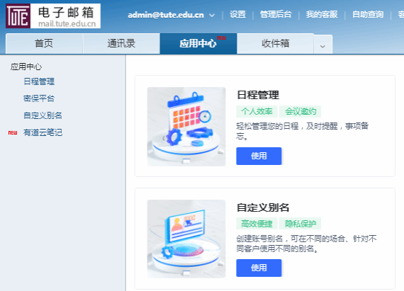 1.登录邮件系统后,点击界面中的“自定义别名”,如下图所示: